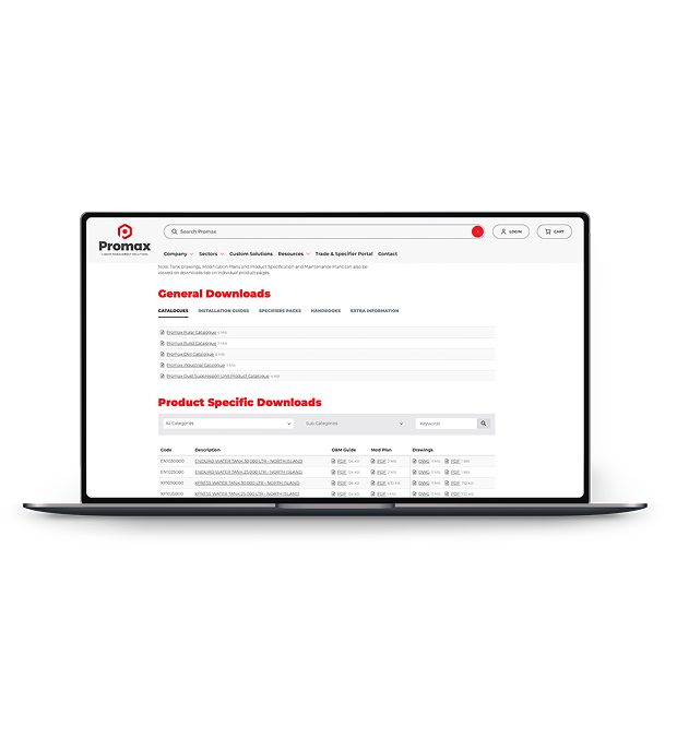 Access our full library of technical resources in one place. Log in to download product specifications, installation guides, drawings, and more. Everything you need to specify and install Promax products with confidence.