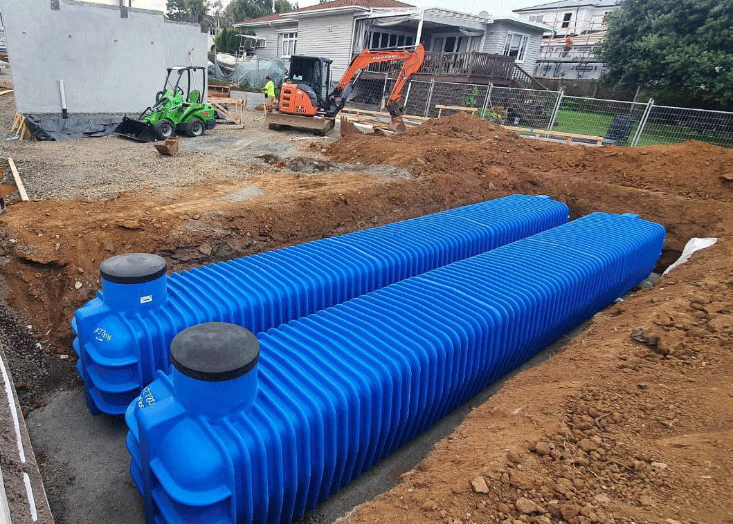 Promax septic tanks from 2,000L to 5,000L in ENDURO and XPRESS series. Single stage filtered system with Taylex outlet filter. Made from polyethylene to AS/NZS 1546 (on-site domestic wastewater treatment). ENDURO: rectangular shape, shallower excavation, 5-year pro-rata warranty. XPRESS: cylindrical shape, 5-year pro-rata warranty. Made in New Zealand.